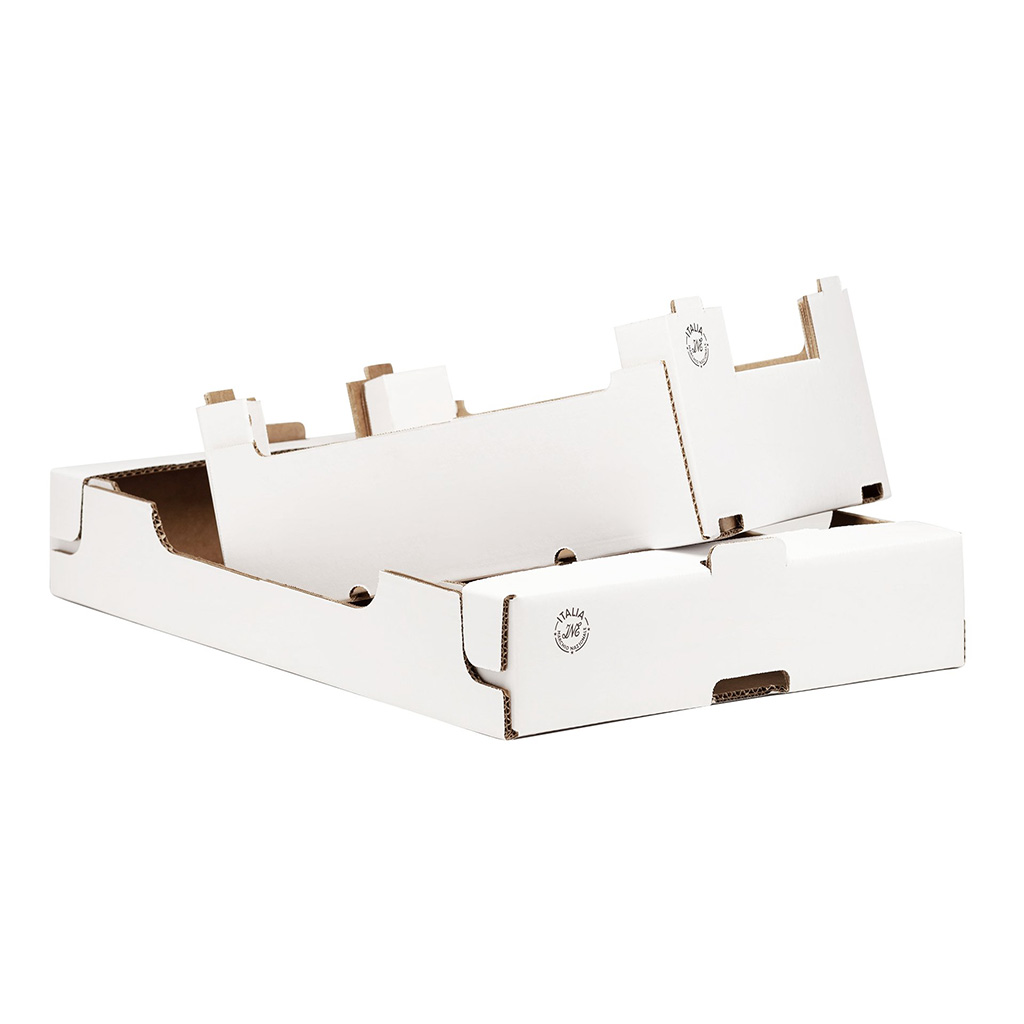 Le scatole sono disponibili in colore bianco o avana, a seconda dell’esigenza, e possono essere personalizzate con scritte e loghi.